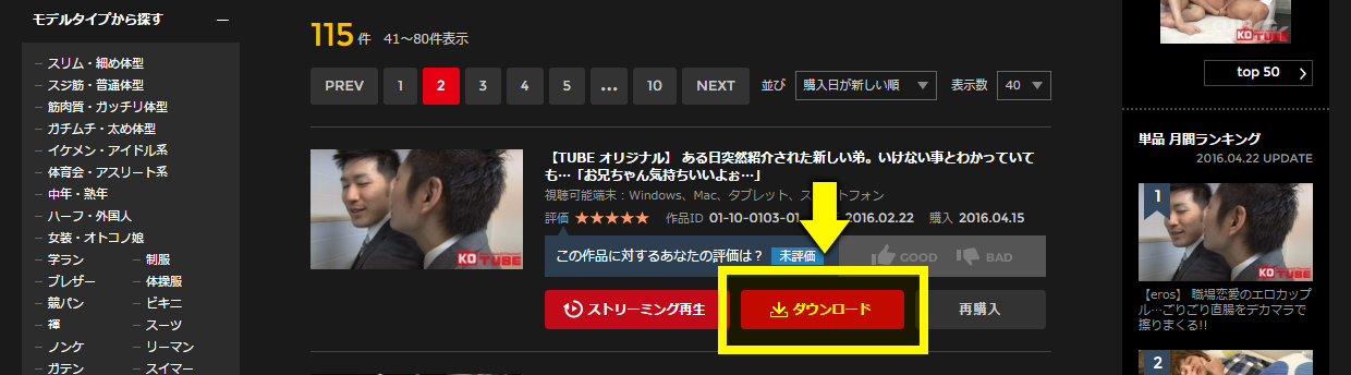 パッケージ・単品・特典作品は購入作品タブを、レンタル作品はレンタルタブを開いてください。