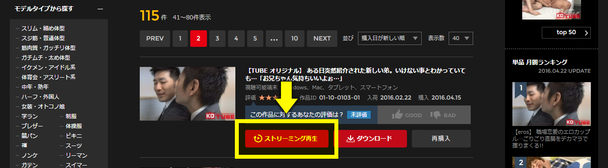 [3] 「ストリーミング再生」をクリックしてください。