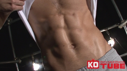 SCENE.3 スジ筋ボディの新藤英作!!色白の肉体に浮き上がる6パック!!巨根でガン掘りされて、腹筋ひくつかせ感じまくり!!