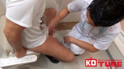尿検査でイケメン看護師が付き添いでついてくる。看護師のケツがエロ過ぎて勃起してしまう!