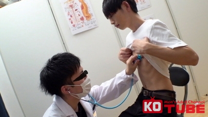 健康診断にやってきたジャニ系青年が医者に聴診器で乳首をこねくりまわされて勃起しちゃう。