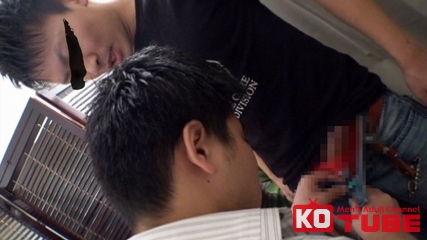 スタッフの罠とも知らず大人しく従っていたらカーテンの隙間からチンコが出てきてサンドイッチ3Pに発展!!