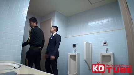 トイレでのハッテン行為をガチ盗撮!? 大阪某所のトイレ。小便器で互いにアピール。邪魔が入って個室に移動… スーツを肌蹴けてガン掘られ!!