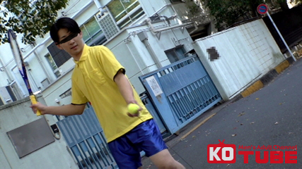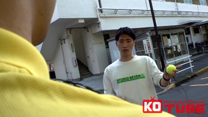 シュート練習中に不幸にも通行人の怖そうなお兄さんに当たってしまう。