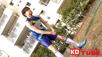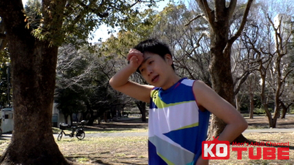 陸上の夏の大会のため走り込み中の【ひであき】。