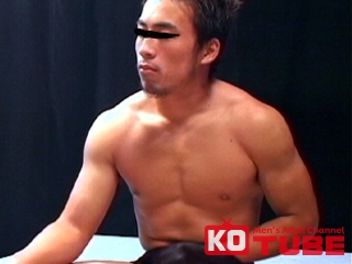 体育会系超男前がオナニー!鍛えられた肉体ときりっとした男っぽい顔立ちの超男前がオナニー披露!!途中ゴーグルマンにフェラと手コキで責められる!最後は自分で扱いて発射!! 『極筋男塾』より