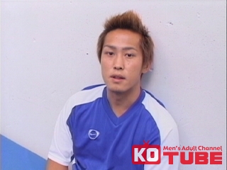 サカユニ姿のイケメンノンケがカメラの前でオナニー披露!途中出て来たゴーグルマンにフェラと手コキで責められ初体験!ビンビンチンポを扱いてザーメン発射!!