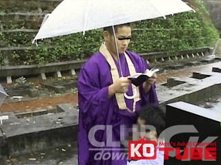 大学2年生172cm79kg19才、実家がお寺と言うことで、自前仕事着を着てもらう。雨の墓地で読経の最中に、スタッフが股間をまさぐり勃起させ、なんと!しゃぶってしまう!! 勃起したチ○コは身体と同じでビックサイズ!!! 服を脱がされつつ乳首や首筋を責められくぐもった声をあげるノンケ住職君。その間も巨根はビンビンのまま。フェラ、玉やケツを舐められ、さらに指やバイブをケツに突っ込まれる…。そしてスタッフとの掘り掘られとフルコース!!! 最後は挿入されたまま扱かれて発射!! 前代未聞のなんとも罰当たりな映像の登場!!! 《POWER GRIP 104「働く男のイケ免許」より》