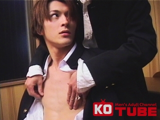 イケメンスーツリーマンが初体験!目隠しされて2人のゴーグルから責められるイケメンリーマン!ビンビンになったチンポを2人から責められる!目隠し外された後も2人がかりで舐められまくって快感発射!!