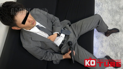 スーツリーマン!雄穴をFマシーンでズボ攻め!チンポ扱いてフィニッシュ!ドピュッ!