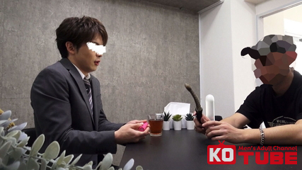 またまた同じ会社の商品がやらかした!?今回のクレーマーの餌食になる男は一味違う??いきなりお怒りの様子でしゃべりだす客にただただ謝罪に転じる男性。代わりの商品はもってきたか??の問いに「あぁすいません、とくにはもってきてません。。」と言うと自分のほうでできる限りのことなやらせて頂きます。「よかったら自分がご奉仕とかします。」その言葉にクレーマーも???「君が身をもって体験してなぜ壊れるのか実験台になってくれるってこと??」「はい」まさかの返答にクレーマーもびっくりするがこれはチャンス!彼にスーツ脱ぐように伝えパンツをおろすとなぜか半勃起!?興奮しちゃってる??ここからクレーマーのされるがままに好き放題実験台にされ完全に勃起してしまう男性。フェラされ己もフェラし、アナルに玩具を入れられ、最後は男性にいかされてしまうと同時に大量の潮吹きでテーブル一面は精子と潮でぐちゃぐちゃに。。。。