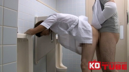 手コキ、フェラ、そしてアナルセックス…患者の硬い肉棒が新人看護師のアナルを激しくピストン!トイレ中に響く看護師の喘ぎ声…