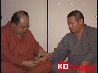 167cm×98kg…まるで布袋さんの様な見事な太鼓腹!男っぽくて逞しい、理想のお父さん登場!! 大田次長と作務衣をまとって、和の雰囲気でいやらしく絡み合う。【サンダービデオ:ほていの太鼓腹 より】