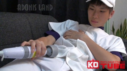 球児コスのプリケツ君が、ピンクアナルにバイブをズッポリ!チクビ&チンポもピンクのピッチピチの18才!!