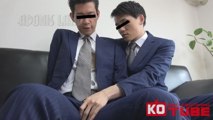 Cool系上司ビジネスソックスで部下のチンポ踏み!スーツ着たままの部下の雄穴をデカマラで激掘り!
